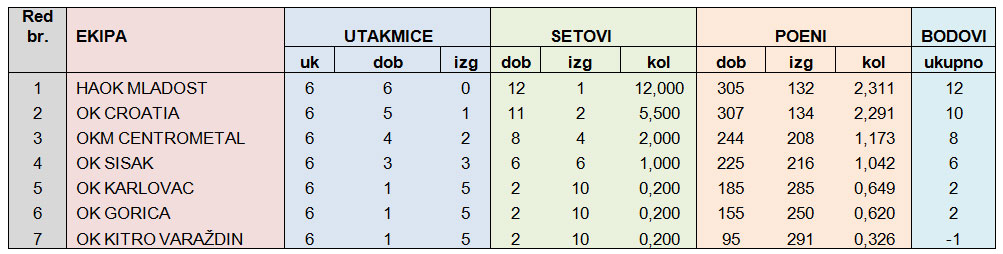 6. OK CROATIA – HAOK MLADOST: 1:2 (24:26, 25:14, 8:15)