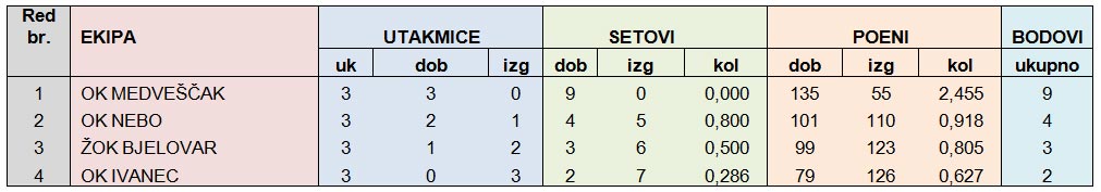 1. OK MEDVEŠČAK – OK IVANEC: 3:0 (15:3, 15:9, 15:3)