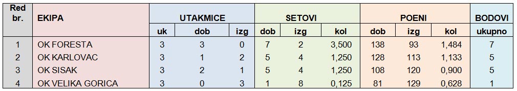 3. OK KARLOVAC – OK VELIKA GORICA 3:0 (15:13, 15:8, 15:8)