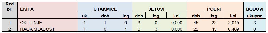 1. HAOK MLADOST – OK TRNJE: 0:3 (9:15, 7:15, 6:15)