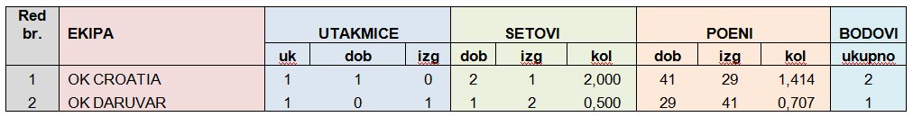 1. OK DARUVAR – OK CROATIA: 1:2 (15:11, 7:15, 7:15)